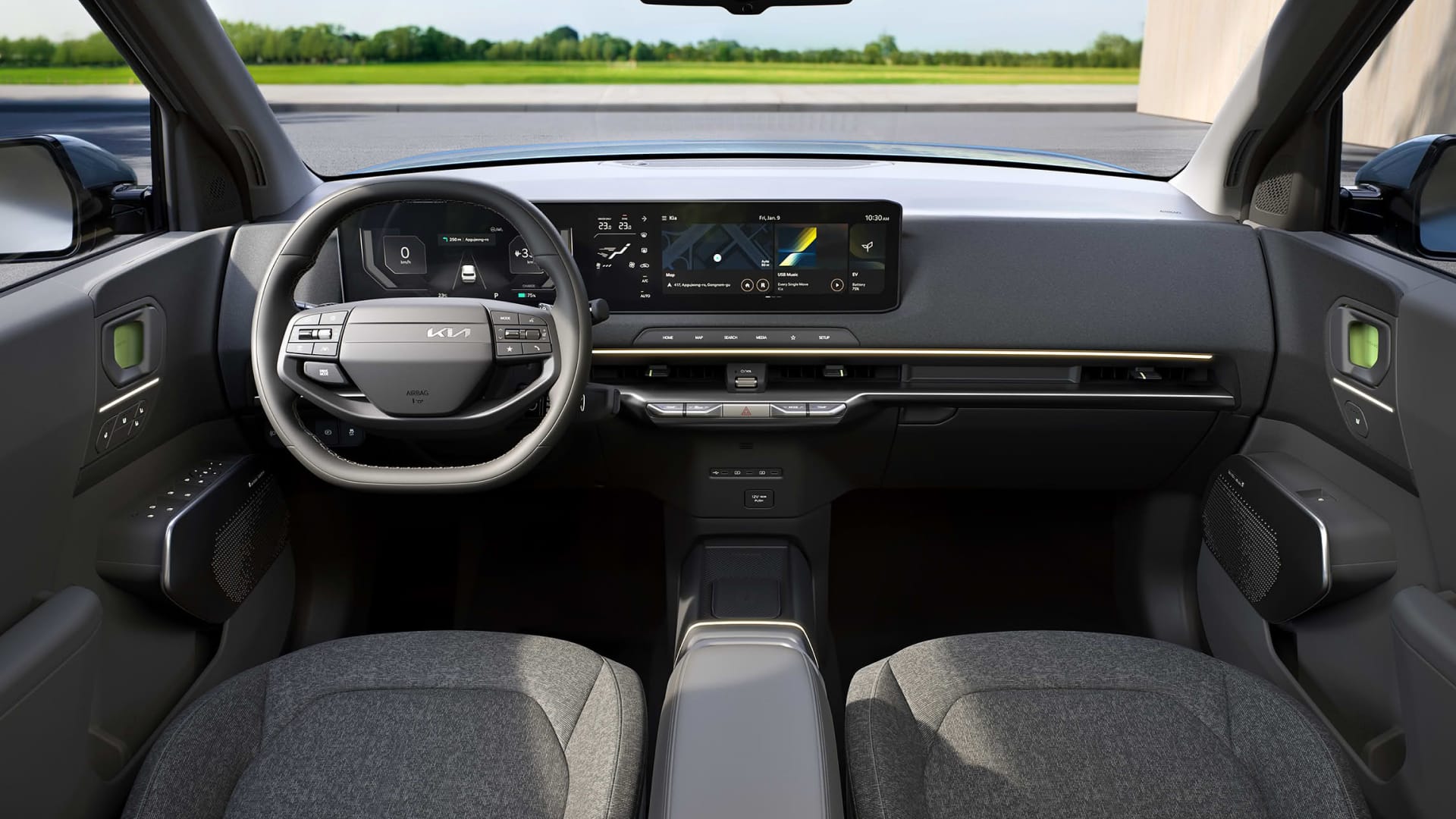 Длина Kia EV2 всего 4,06 м. Кроссовер компактнее конкурентов вроде Volkswagen ID.3, но внутри ощущается просторным за счет колесной базы 2 565 мм и плоского пола.