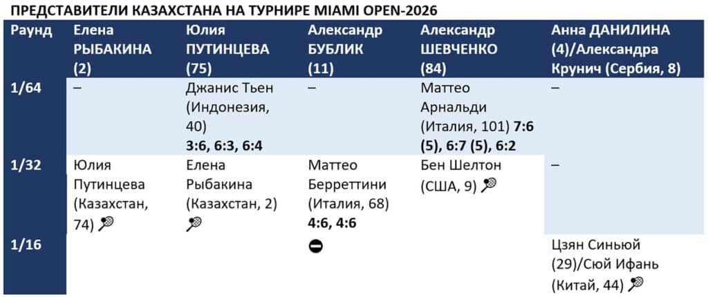 Товарищ Шевченко по сборной Казахстана Александр Бублик (11) сегодня проиграл в Майами соотечественнику и тезке Арнальди Маттео Берреттини (68) – 4:6, 4:6.