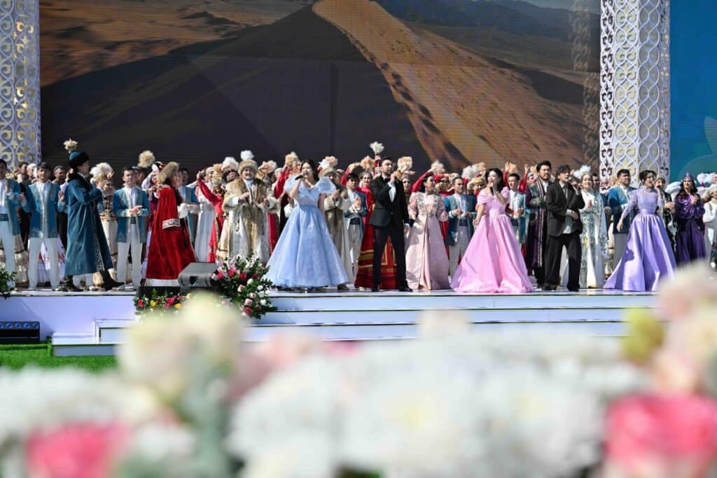 Кроме того, президент посетил праздничный концерт на площадке «Керуен-сарай». Зрителям показали выступления национальных и современных артистов, хореографические постановки и музыкальные номера с оркестром. В программе участвовали известные певцы, ансамбли и танцевальные коллективы.