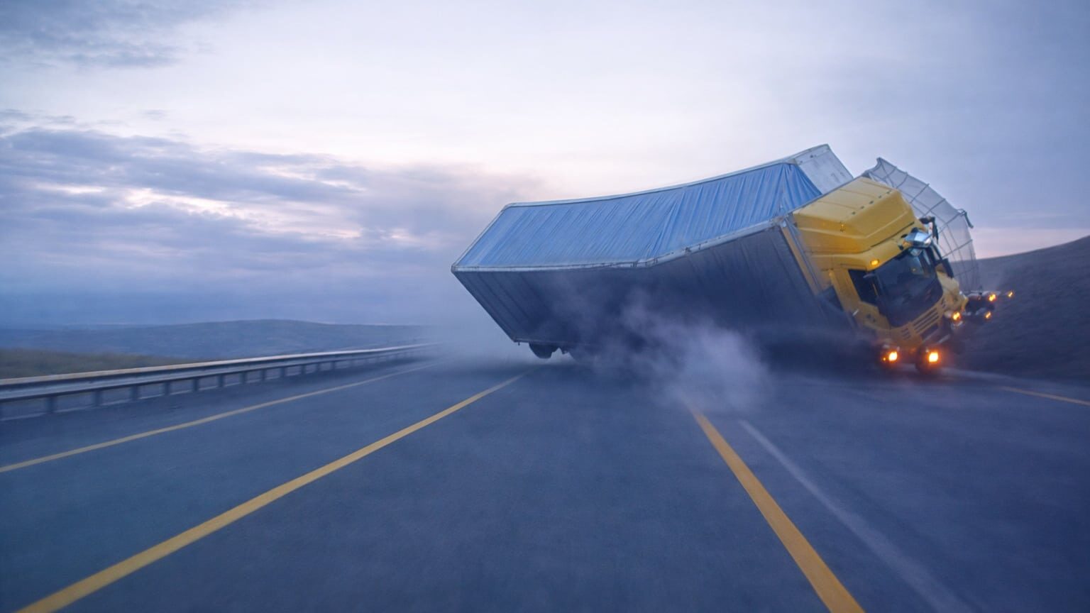 Фура опрокинулась после столкновения на трассе Алматы – Оскемен