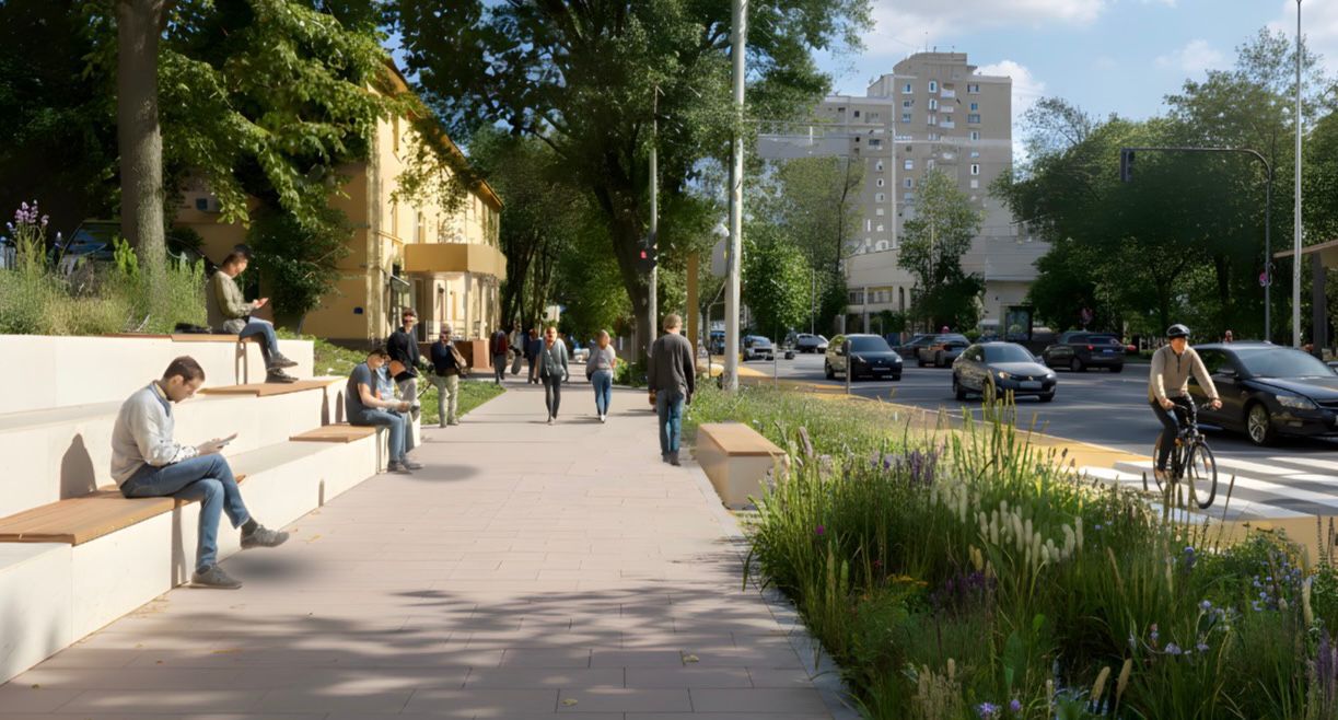 Отдельный акцент должны сделать на пешеходах. Пространство адаптируют для прогулок и отдыха. По проекту улица станет более безопасной, удобной и доступной для всех категорий горожан.