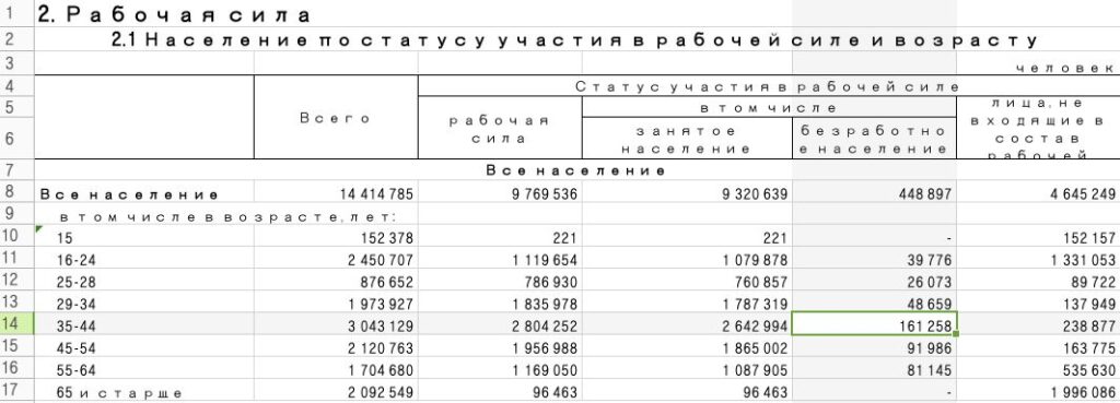Безработица не зафиксирована среди 15-летних, а также среди граждан старше 65 лет.