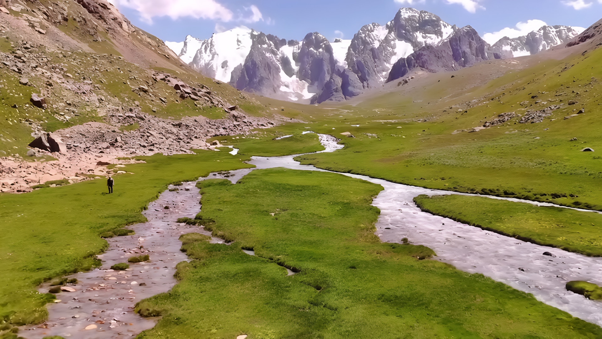 Главная фишка локации – масштаб и рельеф. В верхней части маршрута открываются ледники, горные стены и широкая долина реки. Все это больше напоминает Альпы. А по пути к ним – красивые реки, пастбища, лошади, юрты и длинная долина, которая постепенно сужается к ледникам.