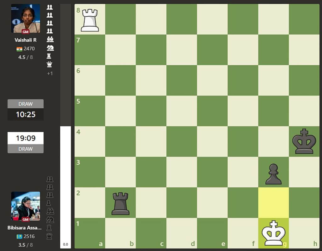 ♟️ Бибисара АСАУБАЕВА (Казахстан, 9*) – Вайшали РАМЕШБАБУ (Индия, 18) 0,5:0,5 (0,5:0,5**)