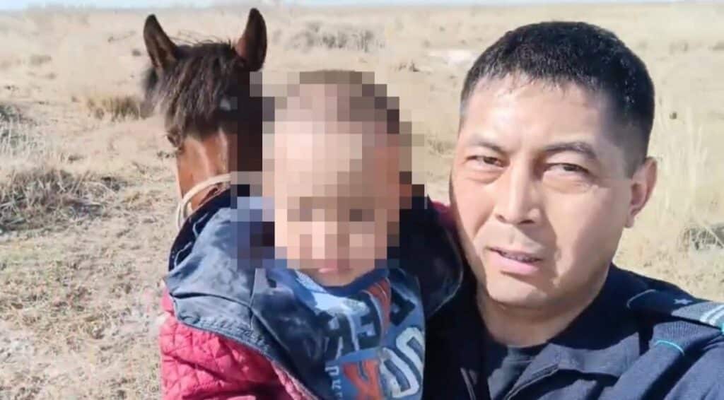 В области Абай полицейский на лошади нашел трехлетнего малыша в степи, в трех километрах от населенного пункта.