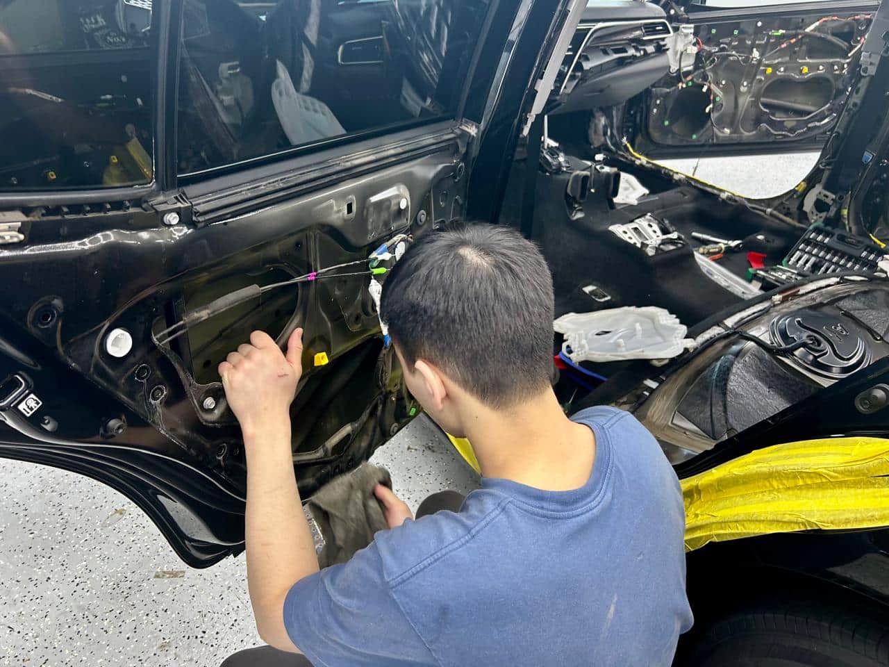 Мастер-детейлер готовит машину к шумоизоляции / Фото: Санат Урналиев