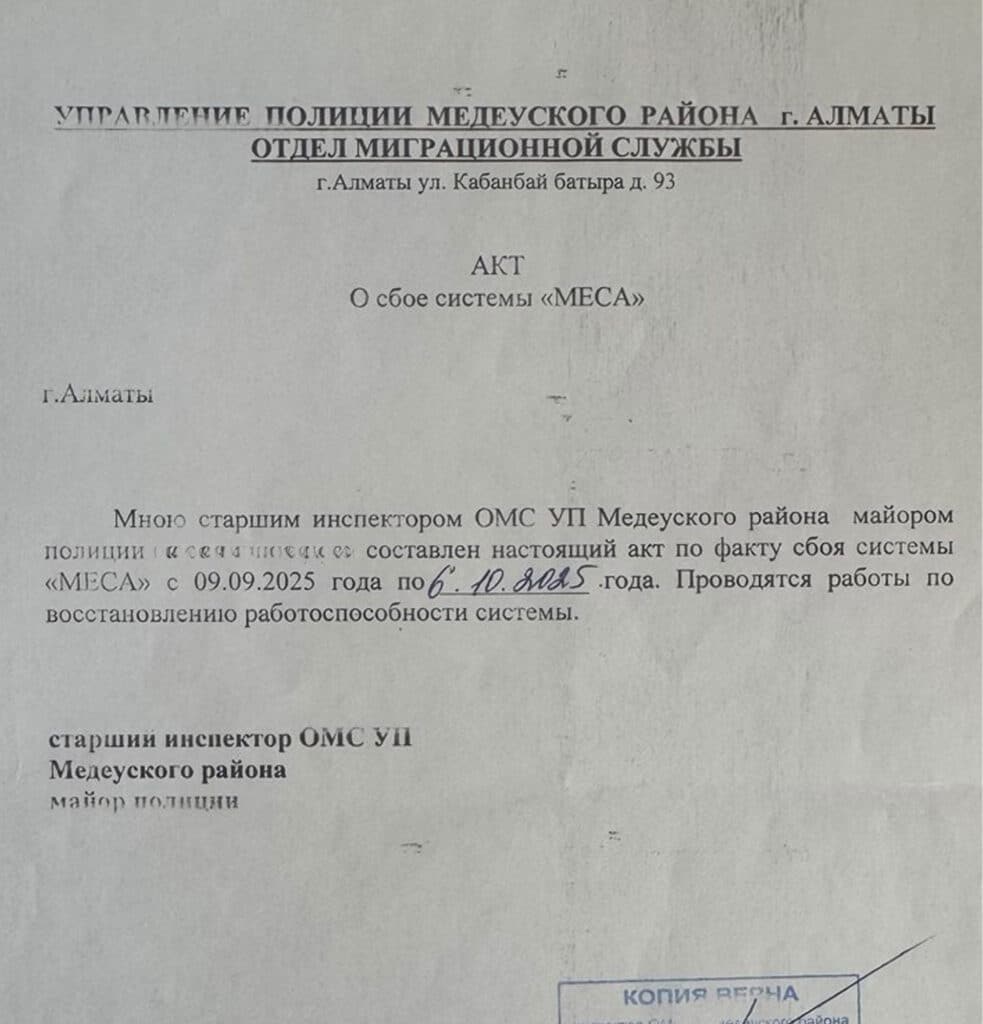 Причина – сбой в базе данных МВД Казахстана по дактилоскопии: загрузить туда ничего нельзя, хотя есть и сканеры, и сотрудники. В разговоре с Kursiv LifeStyle граждане России и Узбекистана рассказали, что пытаются пройти процедуру с осени 2025 года. Сейчас на дворе апрель 2026-го, а все безуспешно. База по отпечаткам пальцев не работает ни в отделениях миграционной полиции, ни в ЦОНах, то есть как система в целом.