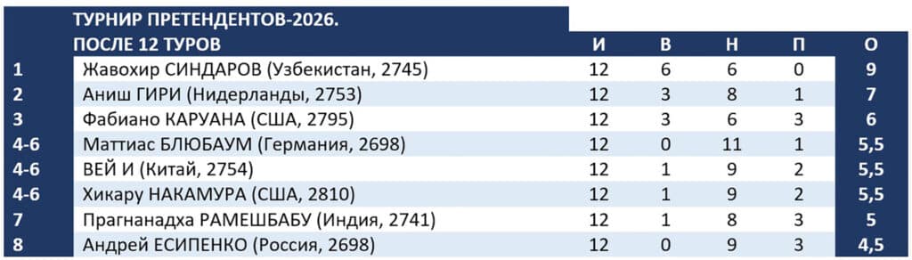 Узбекистанцу Жавохиру Синдарову в двух оставшихся турах осталось набрать всего пол-очка, чтобы сенсационно выиграть турнир. Как и Асаубаева, ташкентец – пятый по рейтингу среди участников турнира. Но его игра на Кипре произвела настоящий фурор. Трудно сказать, что может помешать Синдарову с триумфом завершить претендентскую гонку. Даже если Жавохир проиграет в предпоследнем туре нидерландцу Анишу Гири, ничьей в заключительной партии вполне хватит ему для общего успеха.
