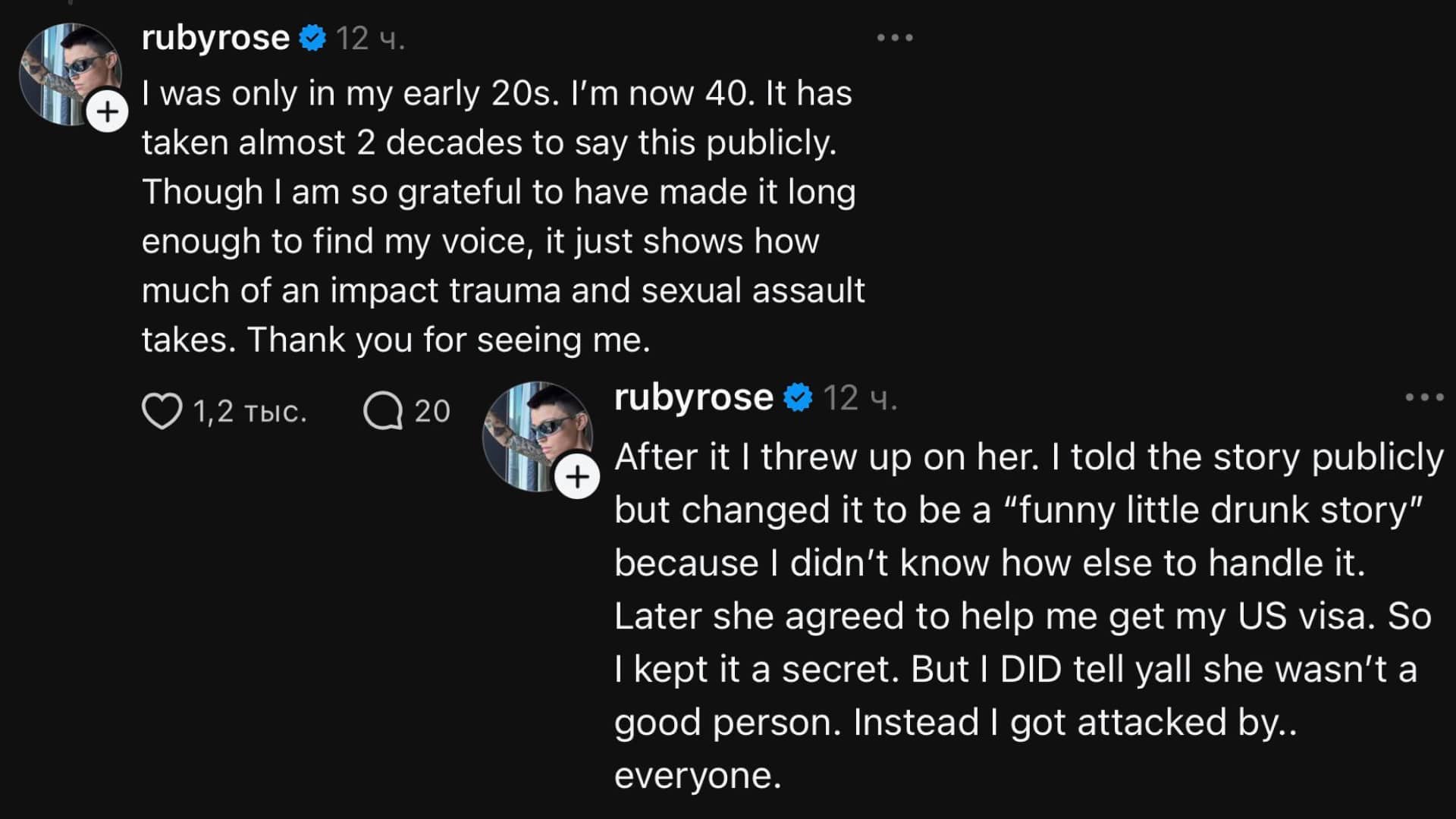 Звезда сериала «Оранжевый – хит сезона» Руби Роуз шокировала фанатов своим заявлением в соцсетях. Она утверждает, что популярная певица Кэти Перри совершила над ней сексуальное насилие почти 20 лет назад.