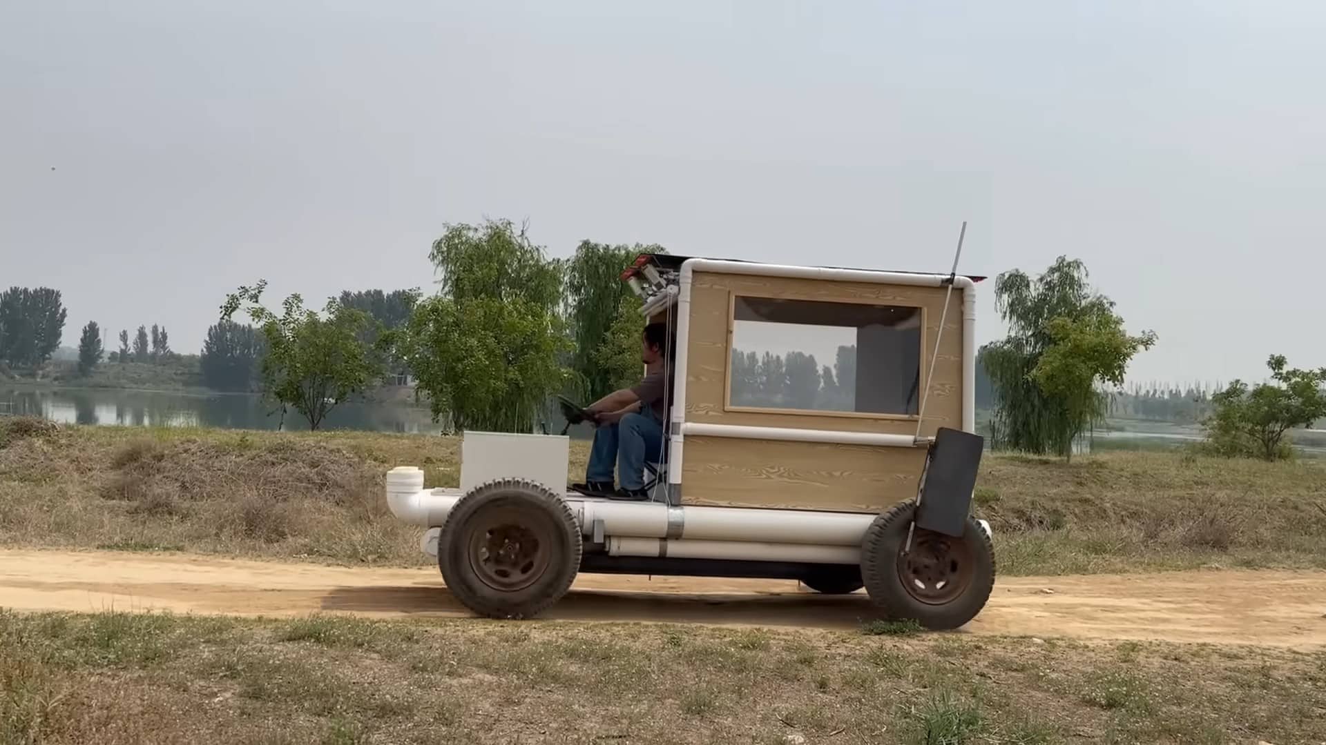 Китайский умелец построил автодом для рыбалки из канализационных труб