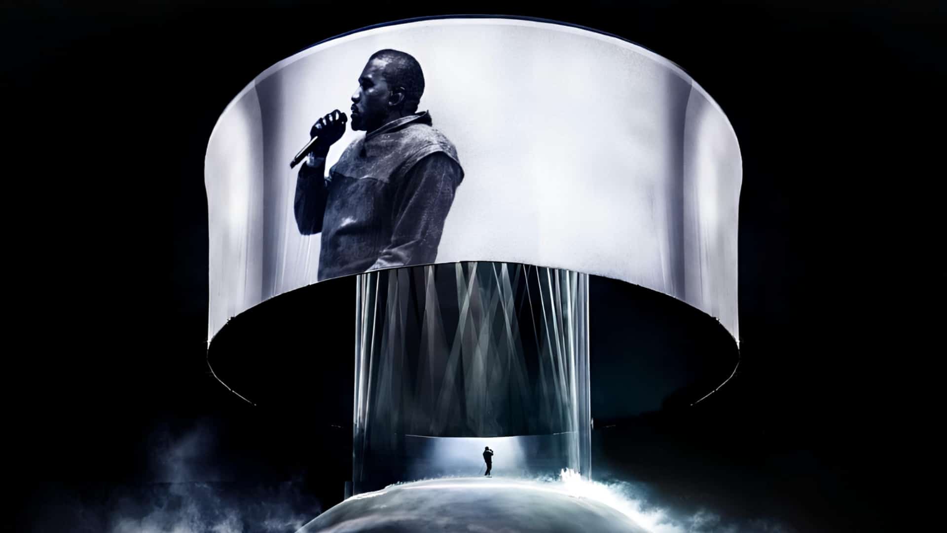 В апреле в Instagram завирусилось видео с концерта американского рэпера. В ролике Уэст выступал на сферической сцене, повторяющей формат шоу в Лос-Анджелесе. Однако исполнял артист вместо привычных рэп-балад хит 1988 года «Седая ночь».