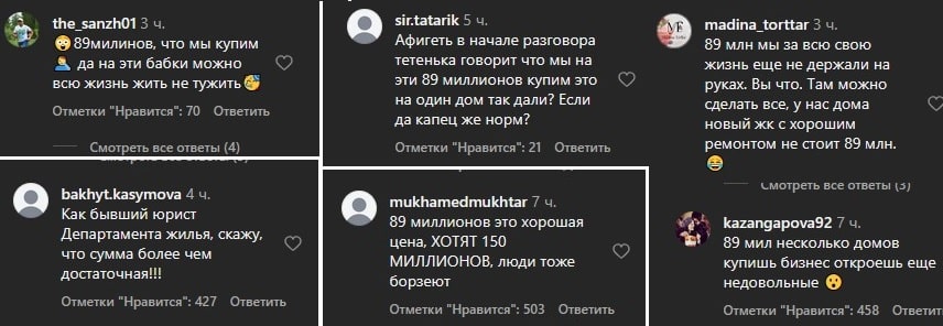 В комментариях под видео мнение казахстанцев разделилось. Многие удивляются и пишут, что 89 млн — это очень хорошая сумма, на которую можно купить не одну квартиру или даже открыть бизнес.