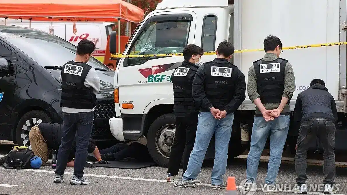 Фотографии с места происшествия показывают грузовик, оцепленный полицией. Чинджу находится примерно в 290 километрах к юго-востоку от Сеула.