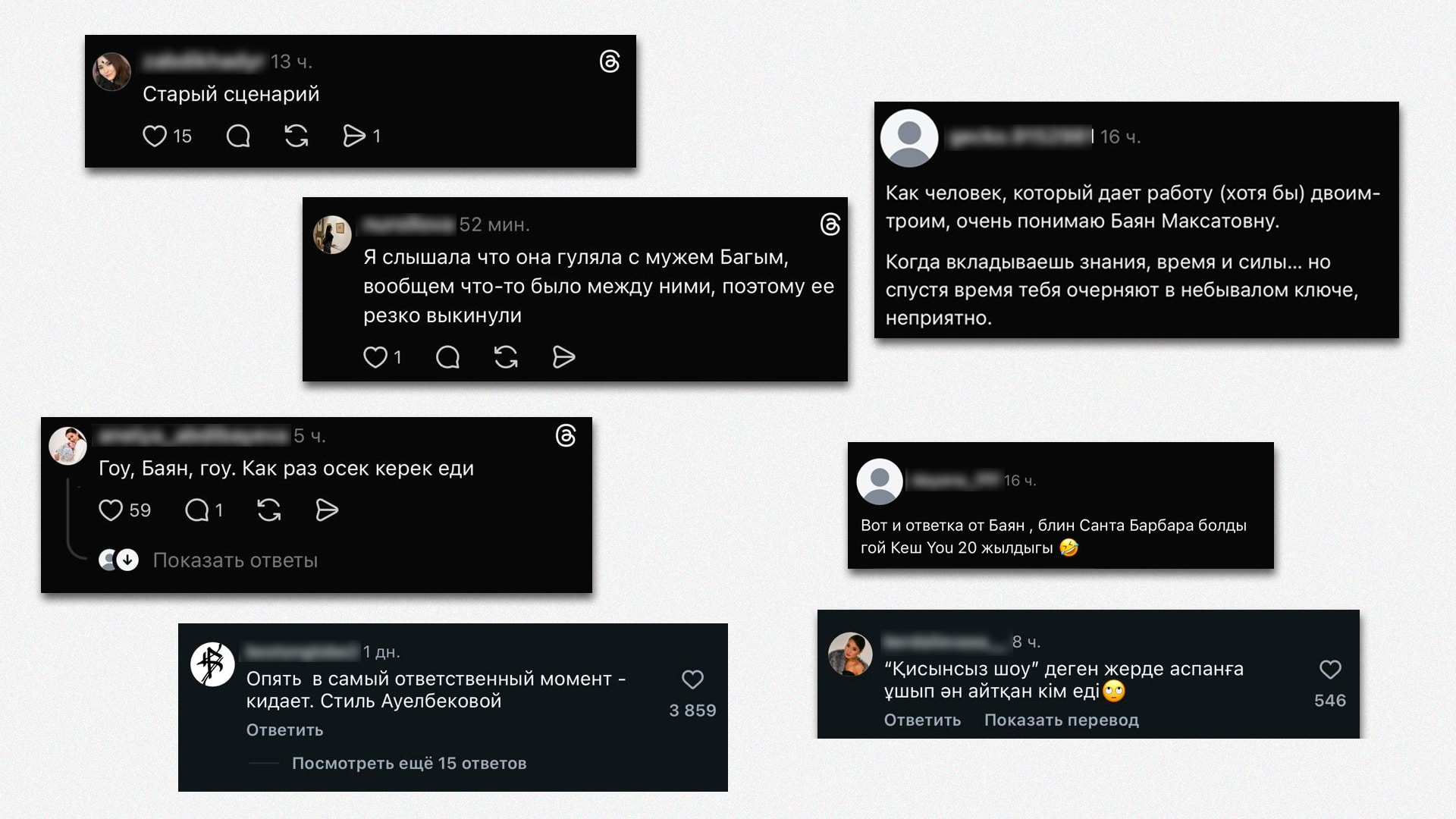 Также в сети вновь всплыли старые слухи о возможных личных конфликтах внутри продюсерского центра. Пользователи вспоминают интервью Адильжана Юсупова — бывшего директора группы и экс-супруга Багым Мухитденовой -, в котором упоминались его отношения с Ауелбековой. По мнению некоторых, это и стало истинной причиной разрыва много лет назад.
