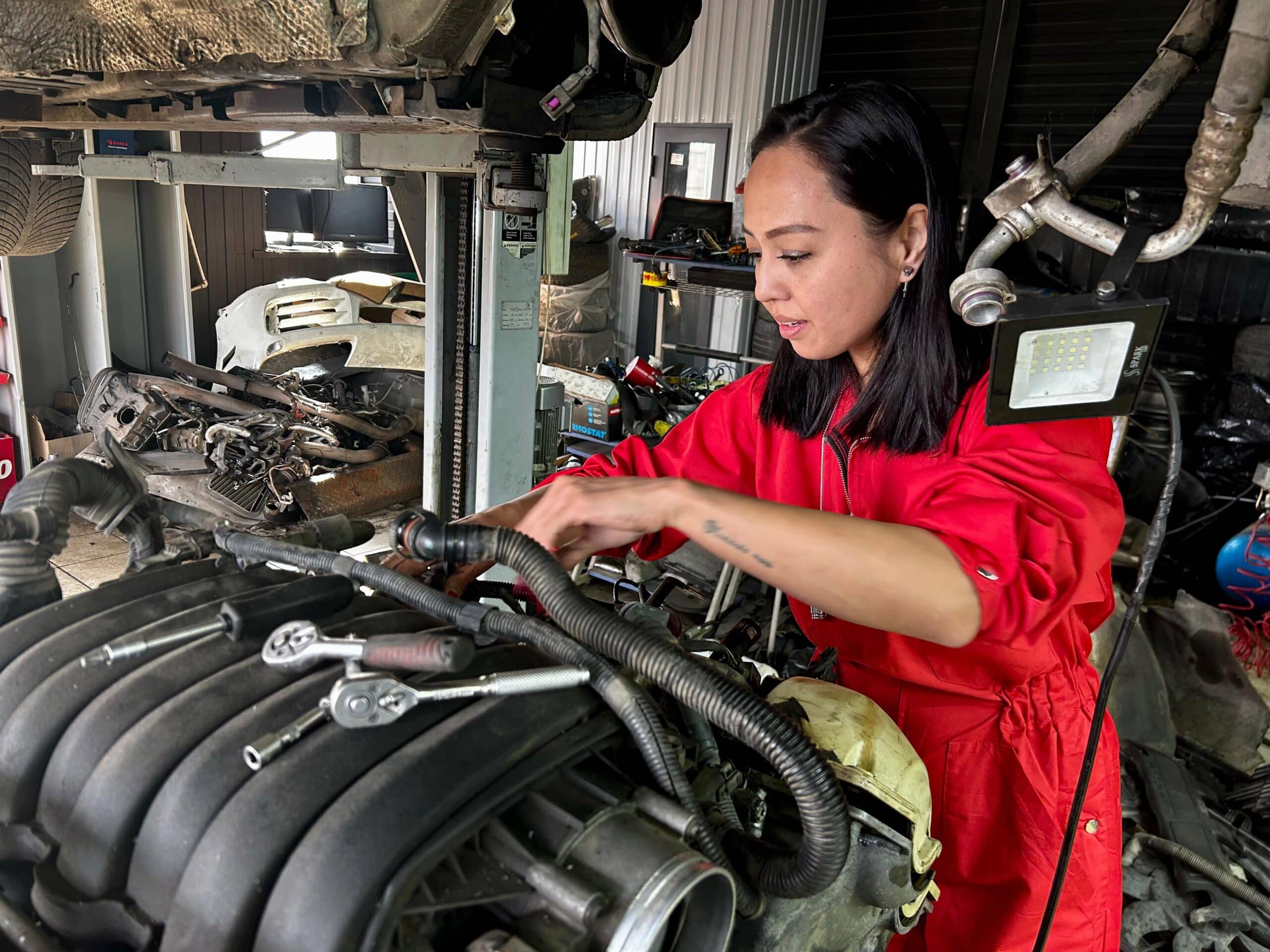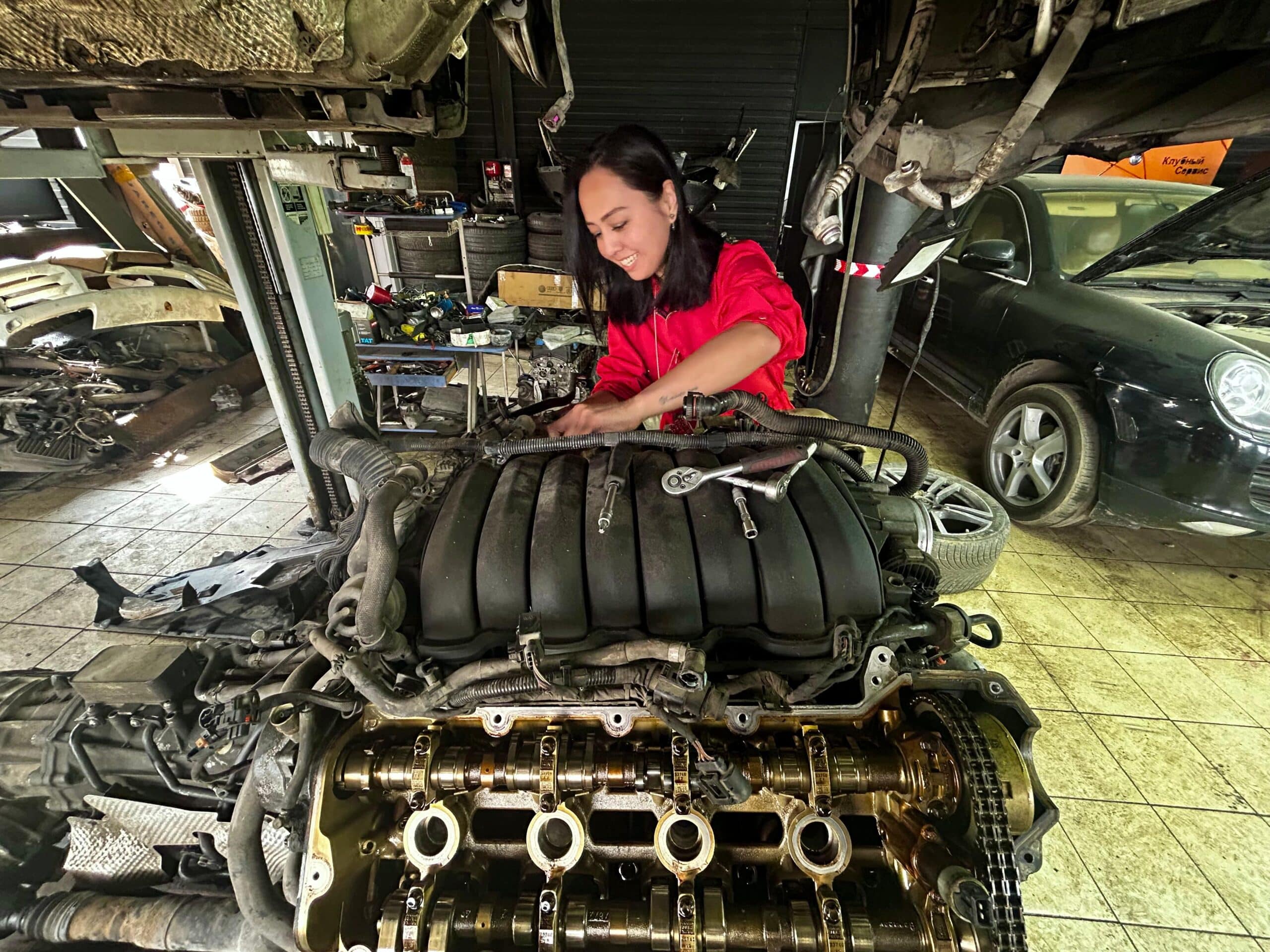 Со временем Асель стала браться за более серьезный ремонт двигателей Porsche Cayenne, Audi Q7 и Volkswagen Touareg объемом от 3,2 до 4,8 л. Она уверяет, что может разобрать и собрать такой мотор за два дня.