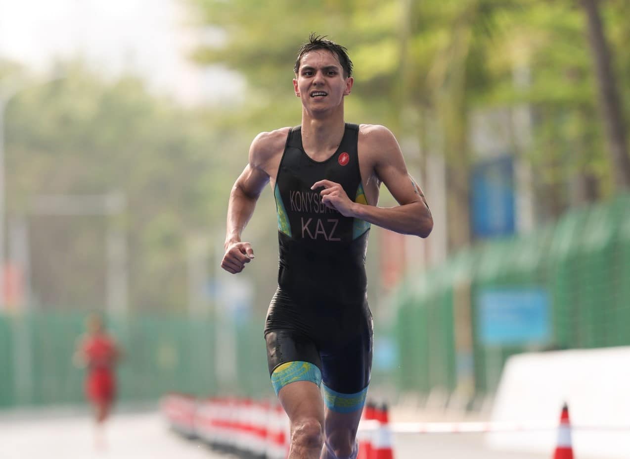 Конысбаев показал лучший результат на первом беговом этапе. Он преодолел его за 07:12. После плавания он занимал промежуточное шестое место. Его результат на этом сегменте — 13:05.