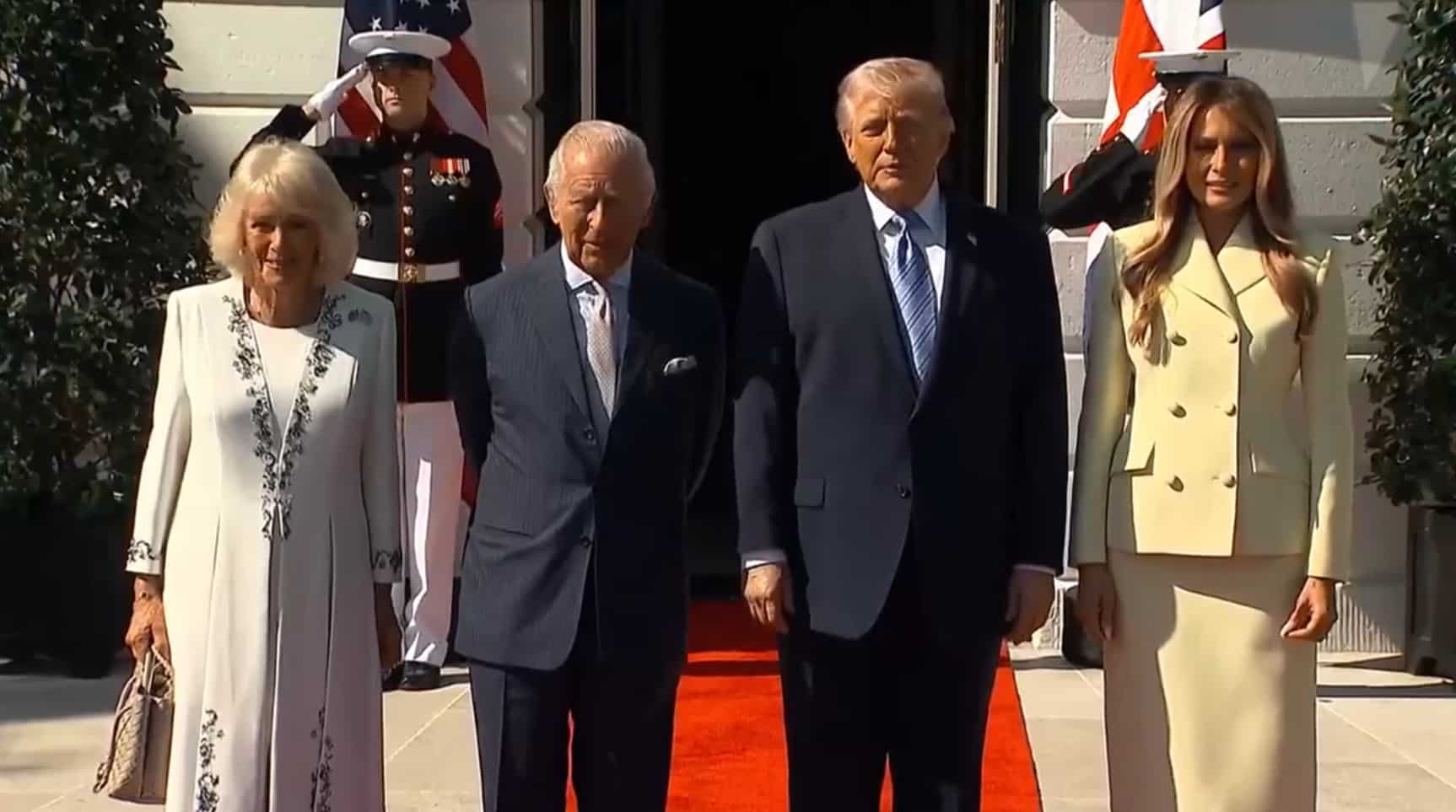 Карл III и Камилла отправились на встречу с президентом США Дональдом Трампом. В Белом доме они также пообщались с первой леди Меланией Трамп. Лидеры обменялись приветствиями, сделали совместные фото и коротко пообщались в неформальной обстановке.