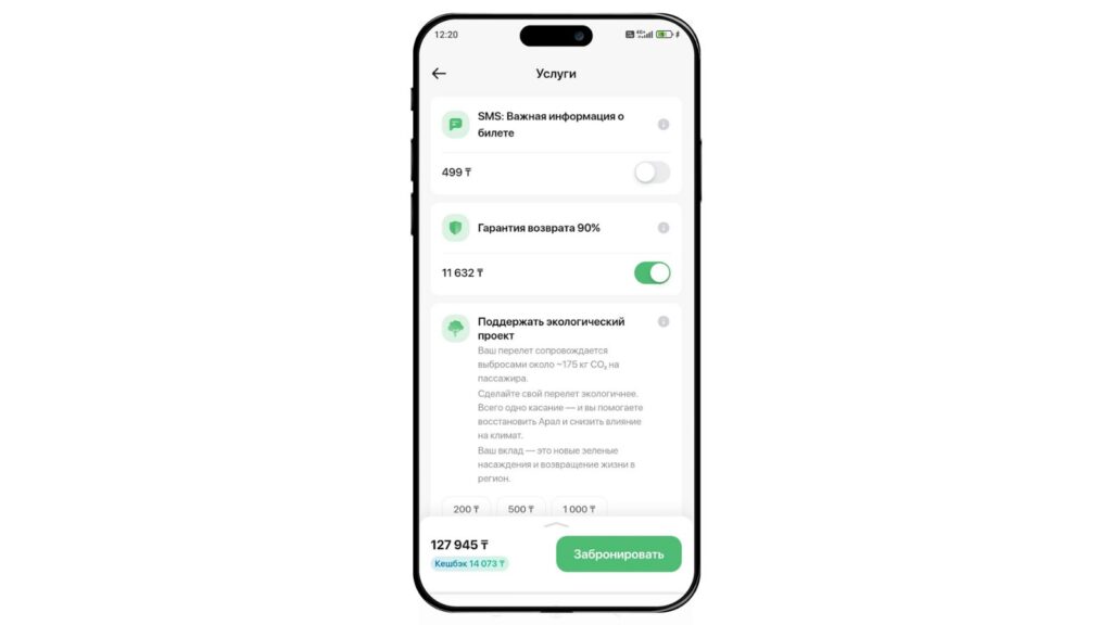 Подключить услугу можно при покупке авиабилета в приложении Freedom Super App — на этапе выбора услуг: