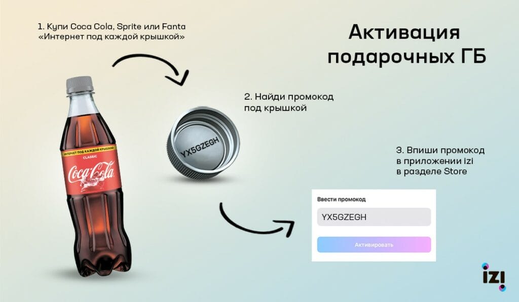 4 февраля 2021 Гигабайты под крышкой. Как мобильный оператор izi и Coca-Cola раздают интернет Активировать бонусные гигабайты можно до 30 апреля 2021 года Читать далее Поделиться Ссылка скопирована