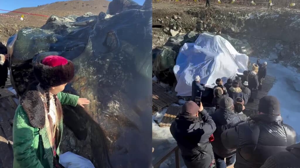 Огромный кусок нефрита у Иссык-Куля стал местом притяжения туристов и паломничества