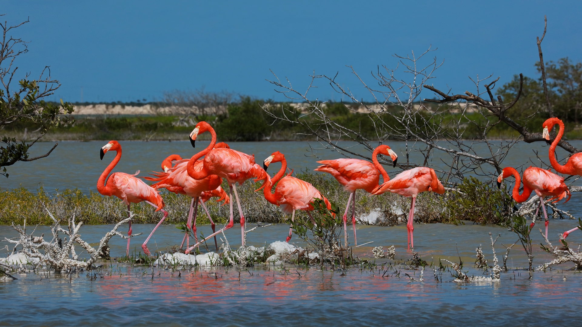 Сотни прекрасных фламинго прилетели на берега Каспия в Актау