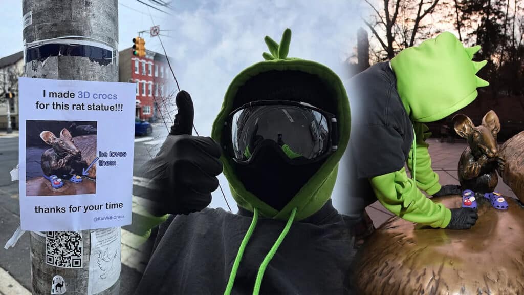 Неизвестный художник создает наряжает статуи животных в самодельный кроксы. На его счет уже несколько перформансов. Художник, скрывающийся за маской и ником @kidwithcrocs в Instagram, запостил первое видео 1 марта. За полмесяца он собрал сотни тысяч просмотров и набрал 60 тыс. подписчиков. Популярность ему принесли милые пранки с памятниками в Нью-Йорке…