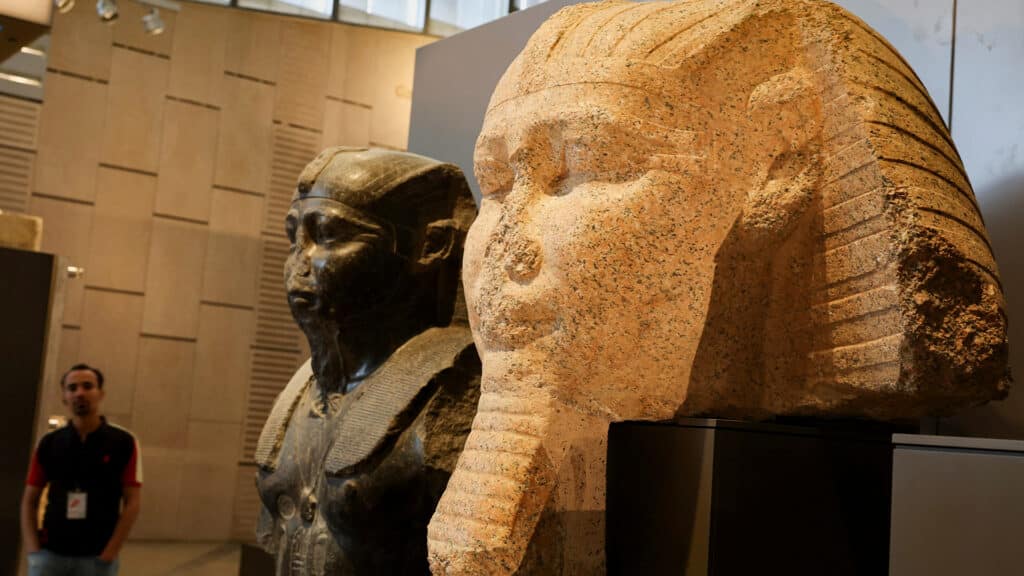 The main atrium features an 11-meter-tall, 83-ton statue of Ramses II, relocated from the old Egyptian Museum in Cairo. Nearby is the solar boat of Pharaoh Khufu, estimated to be about 4,500 years old.