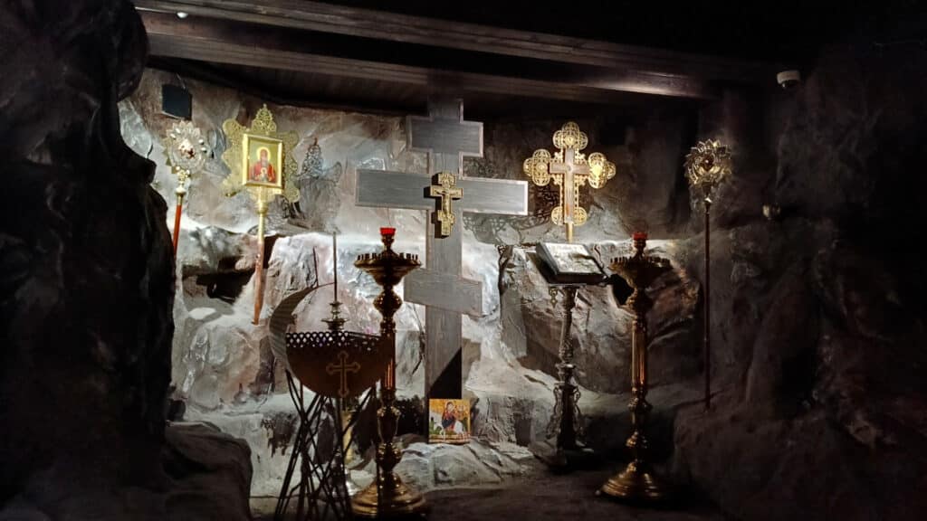Древняя пещерная церковь скрывается под Казанским собором в Алматы, grotto, underground chapel, church, Kazan Cathedral, Almaty, Kazakhstan, orthodox church, dome, tourism, cave chapel