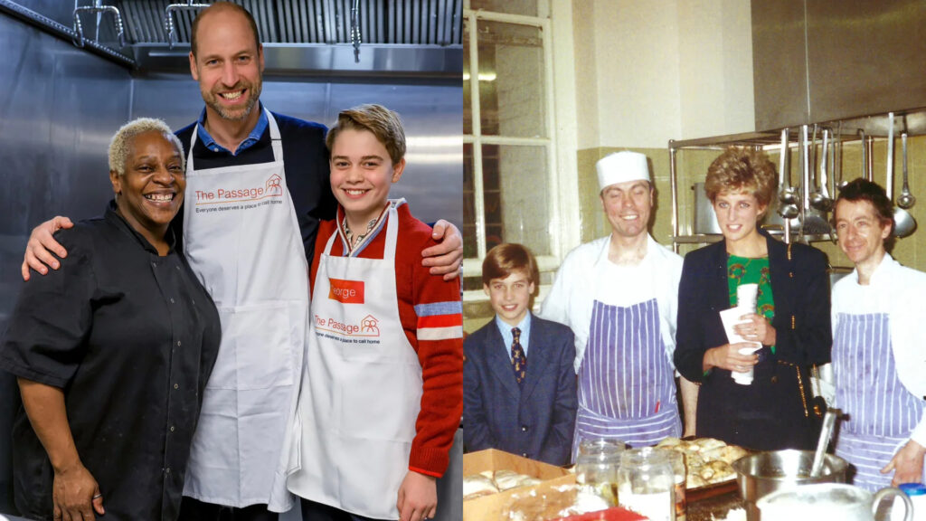 Prince William and his 12-year-old son, Prince George, volunteered at The Passage in London to help staff and volunteers prepare for the charity’s annual Christmas lunch. William’s visit with George echoed his own childhood experience, when Princess Diana brought him to the same organization at a similar age, according to CNN.