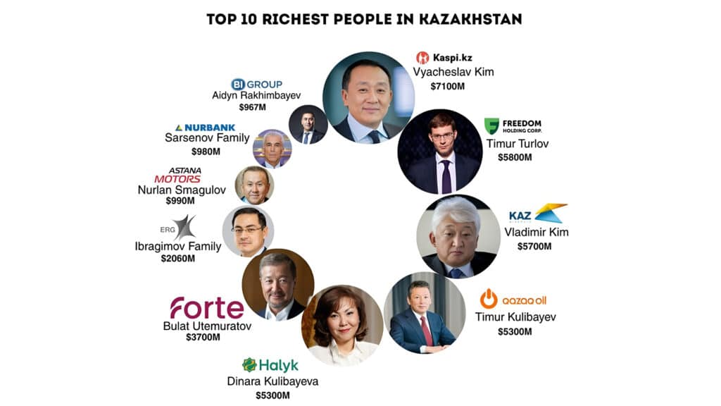 The result is a clearer picture of how wealth and influence are distributed across Kazakhstan’s key industries, including fintech, mining, retail and banking.
