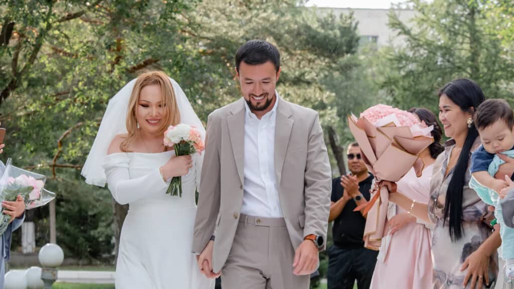 That moment marked the beginning of the «second wedding,» complete with a betashar — the traditional Kazakh ritual of revealing the bride’s face — renewed vows and the exchange of rings the couple had always dreamed of.