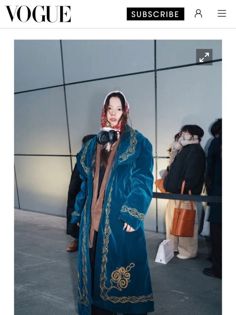 Seoul Fashion Week took place Feb. 3-8. On the fourth day of shows, Isaeva appeared in traditional attire that included her grandfather’s chapan and her grandmother’s scarf.
