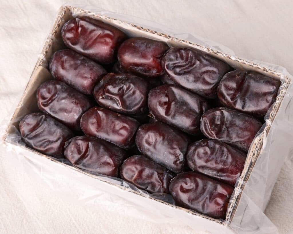 Mazafati dates are smaller than Medjool but softer and very sweet. They are dark brown with a slightly pinkish tone and a shiny surface. Suitable for daily consumption and gentle on the stomach, they are often given to children. These dates are best stored in the refrigerator.