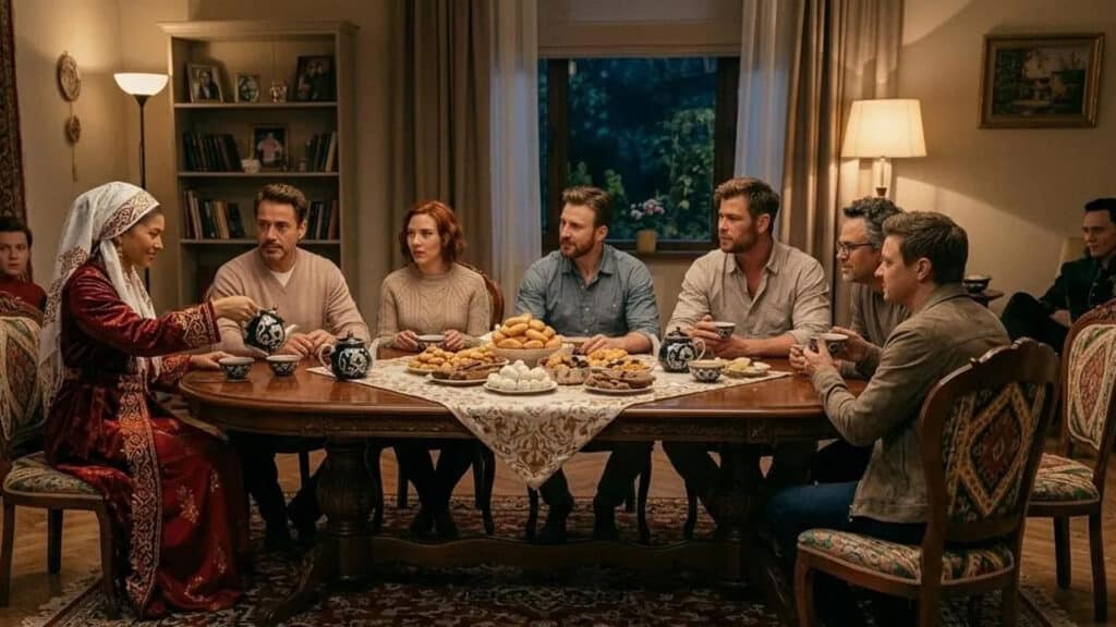In another playful twist, Tom Hiddleston appears as the tamada — or toastmaster — the host responsible for guiding the celebration, making announcements and entertaining guests.