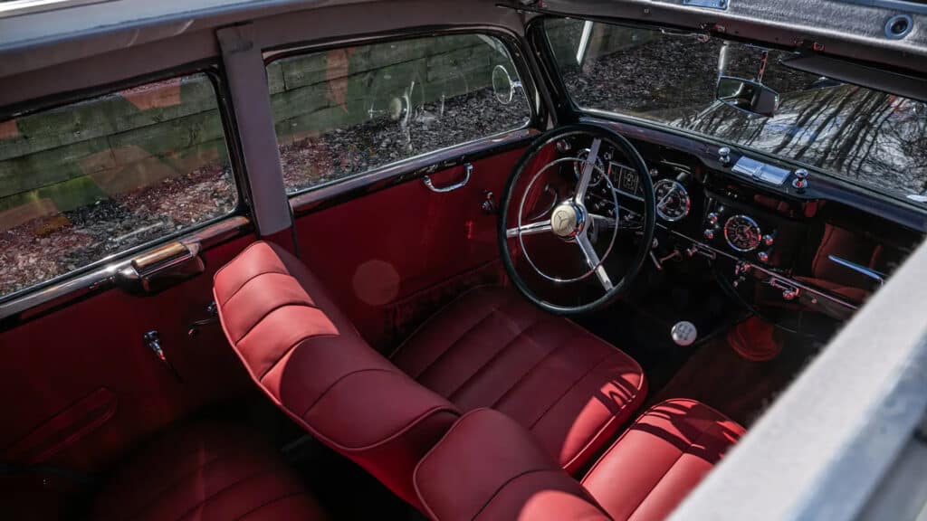 The Mercedes-Benz 170 S was the company’s first postwar luxury model. Powered by a 1.8-liter engine producing 52 horsepower and equipped with independent front suspension, it was considered a premium vehicle in its era.