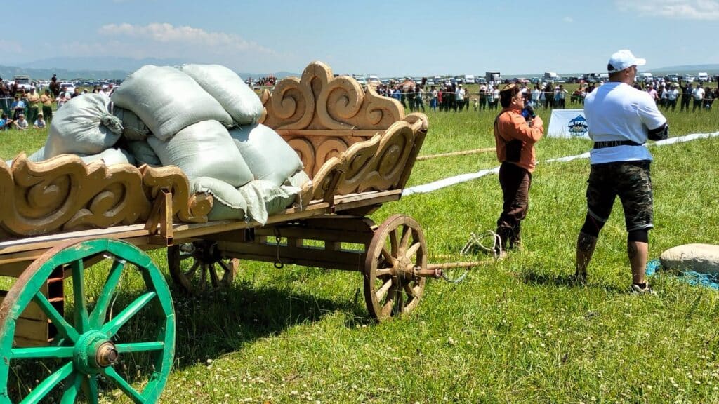 Қымызмұрындық барысында қазақтың ұлттық ойындарының бірі – алыптар айқасы өтті. Онда күш атасын танымайтын қара күш иелері сынға түсті. 150 келі болатын қара тасты көтеріп, межелі жерге дейін көтеріп жеткізуі тиіс. Одан бөлек, ауыр жүк тиелген арбаны да сүйреді.