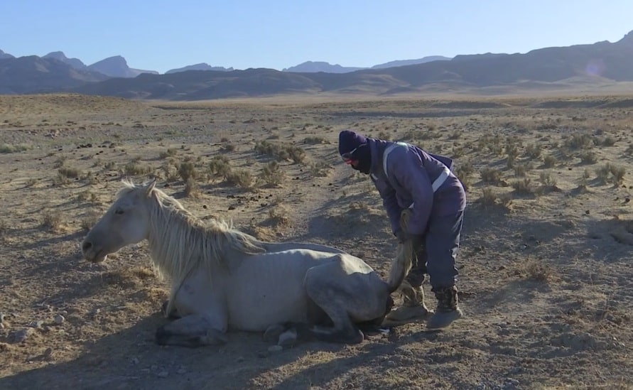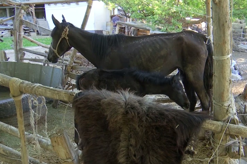 «Мына құлынды биені таудағы өрістен алып келдім. Қорада тұрғанына екі ай болды. Құлынын да жарытпай тұр. Себебі жем-шөп жоқ. Арық. Сүт жоқ. Жанында тағы бір бие бар еді. Көтерем болып өліп қалды. Қуаңшылық қой, жерде түк жоқ. Жұт, таза жұт қой», – дейді ол ашынып.
