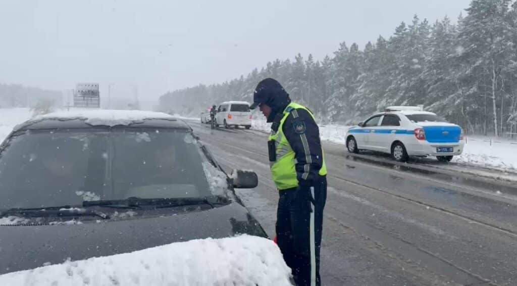 «Қостанай – Алматы – Екатеринбург республикалық тас жолына ерекше назар аудардық. Таңғы сағат 6:00-ден 10:00-ге дейін жол шетіндегі сайға сырғанап кеткен тоғыз автокөлікті шығардық. Мәселен, жолдың бір учаскесінде Alphard және Volkswagen көліктерінің жүргізушілері рөлге ие бола алмай, жолдан шығып кеткен. Оларға патрульдік полиция қызметкерлері көмектесіп, қасынан өтіп бара жатқан жүк көлігі мен бейжай қарамаған жүргізушілердің көмегімен көліктерді қар құрсауынан алып шықты», — деп хабарлады полиция.