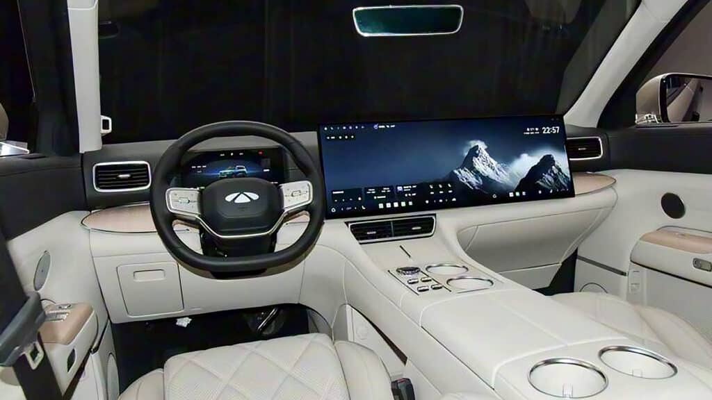 Салонда шағын цифрлық аспаптар панелімен және алып мультимедиа экраны бірден көзге түседі. Көңіл көтеру жүйесінің дисплейі 30 дюймді құрайды, экраны оң жақ шетіне дейін созылған. Артқы қатардағы жолаушылар үшін 17,3 дюймдік жеке экран орнатылған. Екінші қатардағы орындықтар 14 бағытта реттеледі. Ал топтық жинақтамада бұл орындықтар жылыту, желдету және массаж функцияларымен жабдықталған. Негізгі жинақтаманың өзінде-ақ 11 қауіпсіздік жастығы қарастырылған.