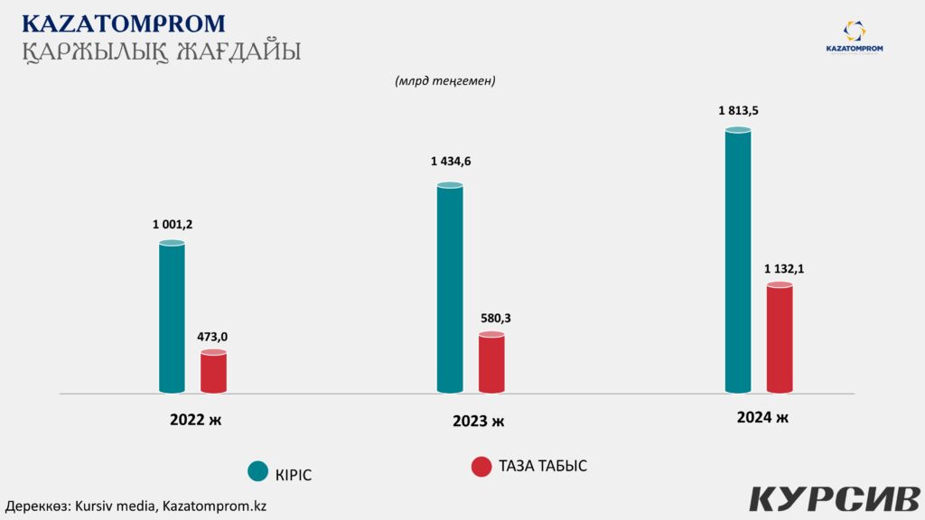 2024 жылы «Қазатомөнеркәсіптің» кірісі 1,81 трлн теңгеге жетіп, бір жылда 26,5%-ға өсті.