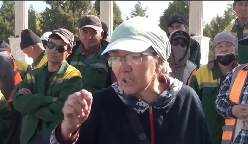Жұмысшылардың алдына Ғалымжан Қайназаровтың өзі шыққан. Ол жұмыстан кеткен аула сыпырушылар «өз еркімен кетті» деген. Бірақ наразы топ оның сөзімен келіспейді.