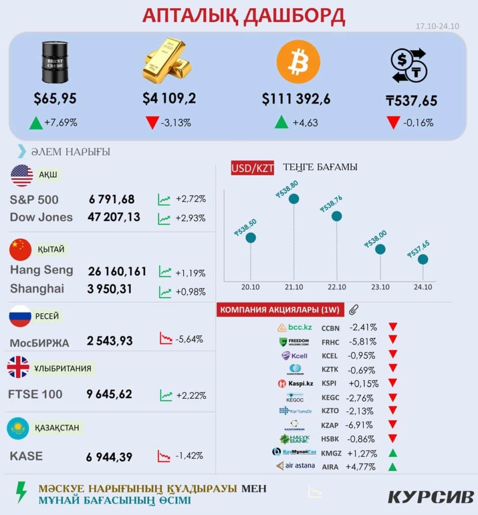 Азиялық Гонконг пен Шанхай нарығы да осы аптаны плюспен жапты. Ал Мәскеу биржасы 2543,9 межесіне дейін төмендеп, аптаны -5,6%-бен аяқтады. Ресей нарығына АҚШ пен Ресей келісімдерінің шегерілуі, қор нарығына әсерін тигізді.