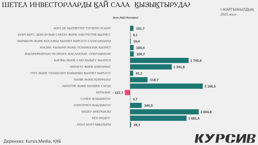 2025 жылдың алғашқы жартысында шетелдік капитал ең көп тартылған салалар: