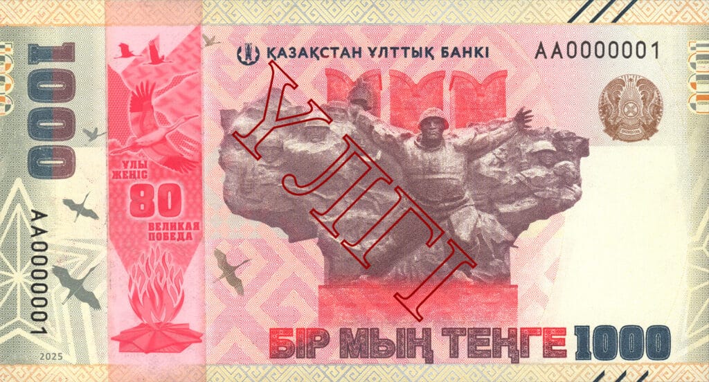 Айта кетейік, Қазақстан Ұлттық Банкі 2025 жылғы 9 мамырда Ұлы Жеңістің 80 жылдығына арнап номиналы 1 000 теңгелік мерейтойлық банкнотаны айналымға шығарғанын мамырда хабарлаған еді. Банкноталардың таралымы 5 миллион данамен шектелген.