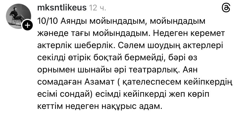 Фильмде басты рөлді ойнаған актер Аян Өтепберген тредстегі жазбасында «Ауруды көрген соң көшеде үндемей кішкене жаяу жүру керек немесе достарыңмен көңіл көтеру керек», – деп жазған еді. Бекер емес тәрізді. Көрермендер «фильмнің өте ауыр екенін» айтады.