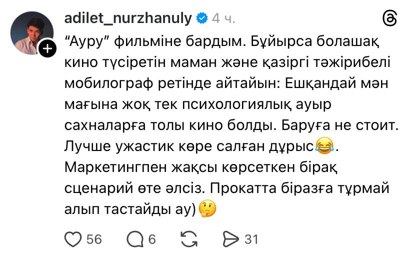 «Сау боп кіріп ауру болып шықтым»: «Ауру» фильмін көргендер не деп жатыр?