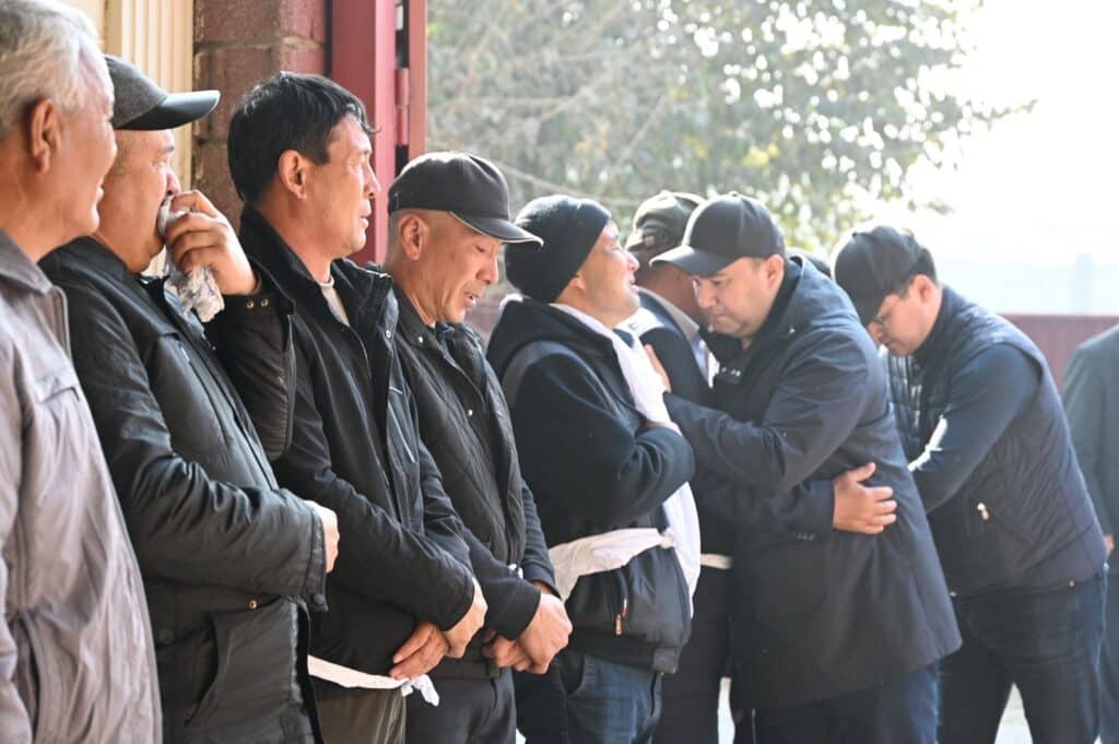 Түркістан облысы, Алғабас ауылында өрттен қайтыс болған марқұмдардың жаназасы шығарылып жатыр. Қазіргі уақытта 7 ер адамның жаназасы өтті. Оқиға орнына облыс әкімі Нұралхан Көшеров барып, марқұмдардың туыстарына көңіл айтты.