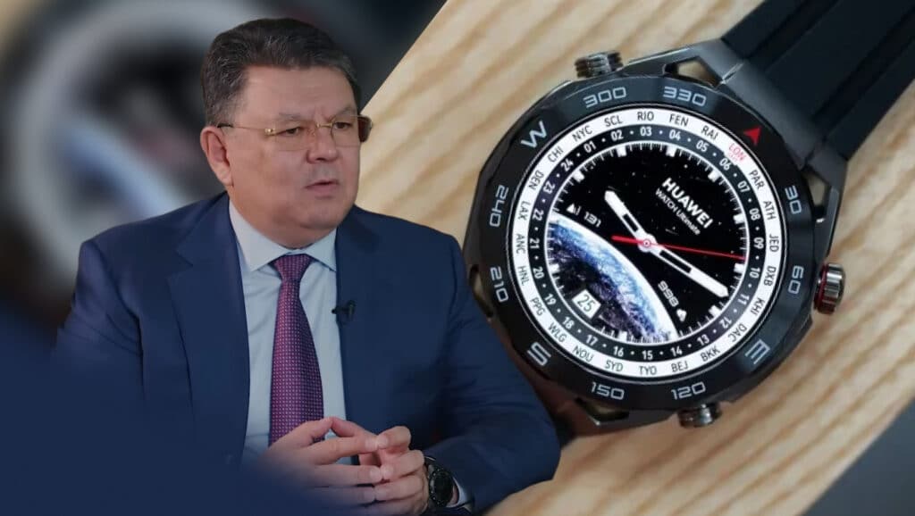 Премьер-министр Қанат Бозымбаевтың да сағаты көзге түседі. ЖИ оның қолындағы аксессуарды Huawei watch ultima цифрлы сағаттарына ұқсатты. Корпусы металл, денсаулық көрсеткіштерін бақылайды, су астында пайдалануға болады. Дәл осы сериядағы сағаттың бағасы шамамен 200-250 мың теңгеден басталады.