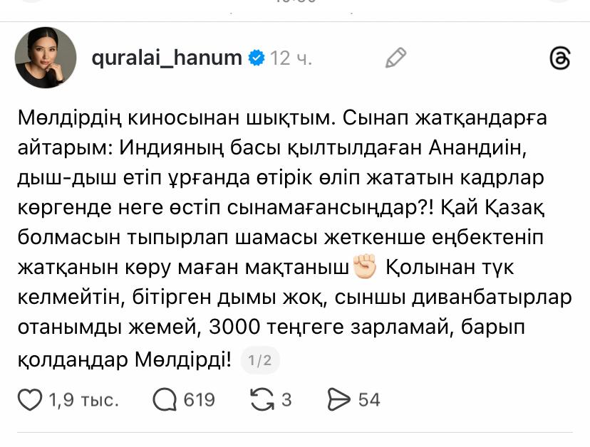 Солардың бірі – миллион аудиториясы бар психологи, блогер Құралай ханым. Бірақ оның бұл жазбасы біраз хейтке ұшырады да. Оқырмандары «отаным» сөзін қорлағанына, көпшілікке «зарлама» деп айтқанын сынға алды.