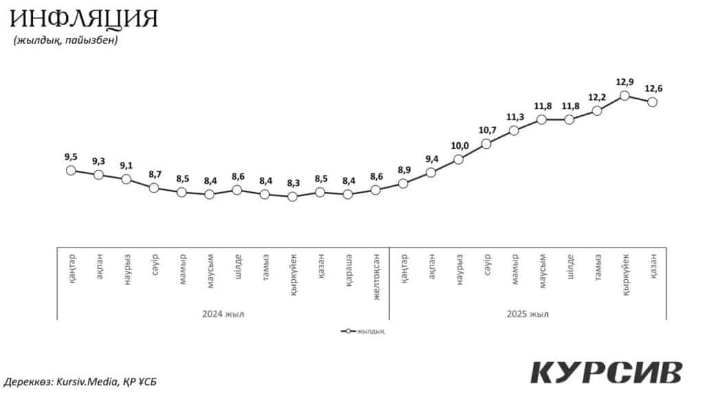 Жалпы инфляция қыркүйекте 12,9%-ға жетіп, қазан айында 12,6%-ға төмендеді. Сол сияқты, негізгі инфляция қыркүйектегі 12,6%-дан қазан айында 12,3%-ға дейін төмендеді, бұл күтулерден айтарлықтай төмен. Ұлттық банк ерекше назар аударатын жасырын инфляциялық динамика да қазан айында айтарлықтай баяулады.